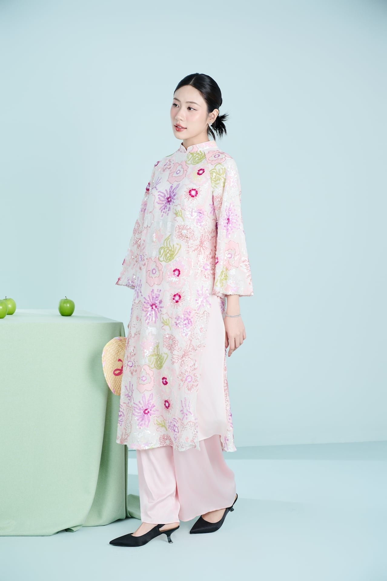 • Thông số Áo dài: FREESIZE phù hợp số đo ngực dưới 94 cm và eo dưới 98 cm, chiều dài áo: 120 cm