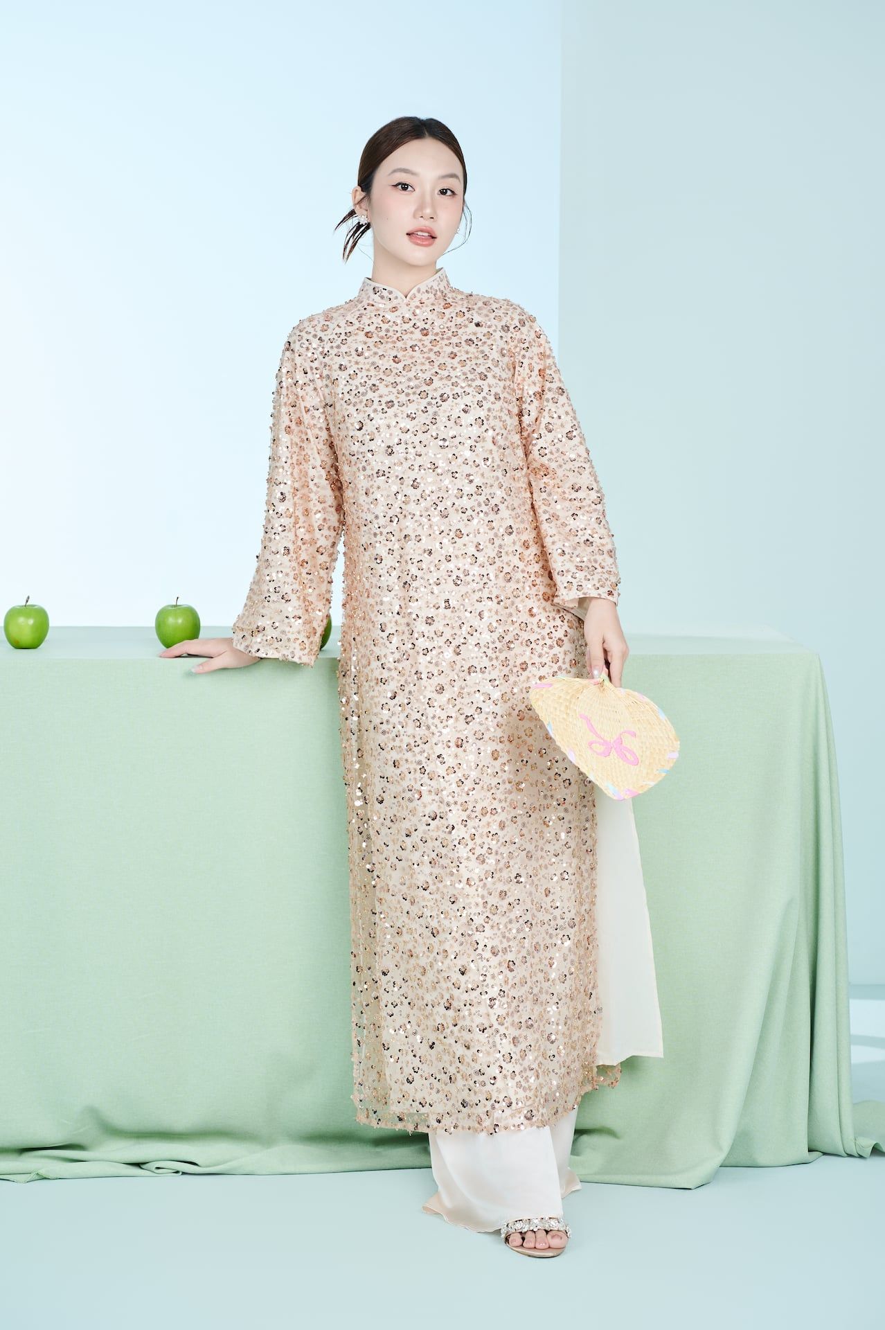 • Thông số Áo dài: FREESIZE phù hợp số đo ngực dưới 94 cm và eo dưới 96 cm, chiều dài áo: 130 cm