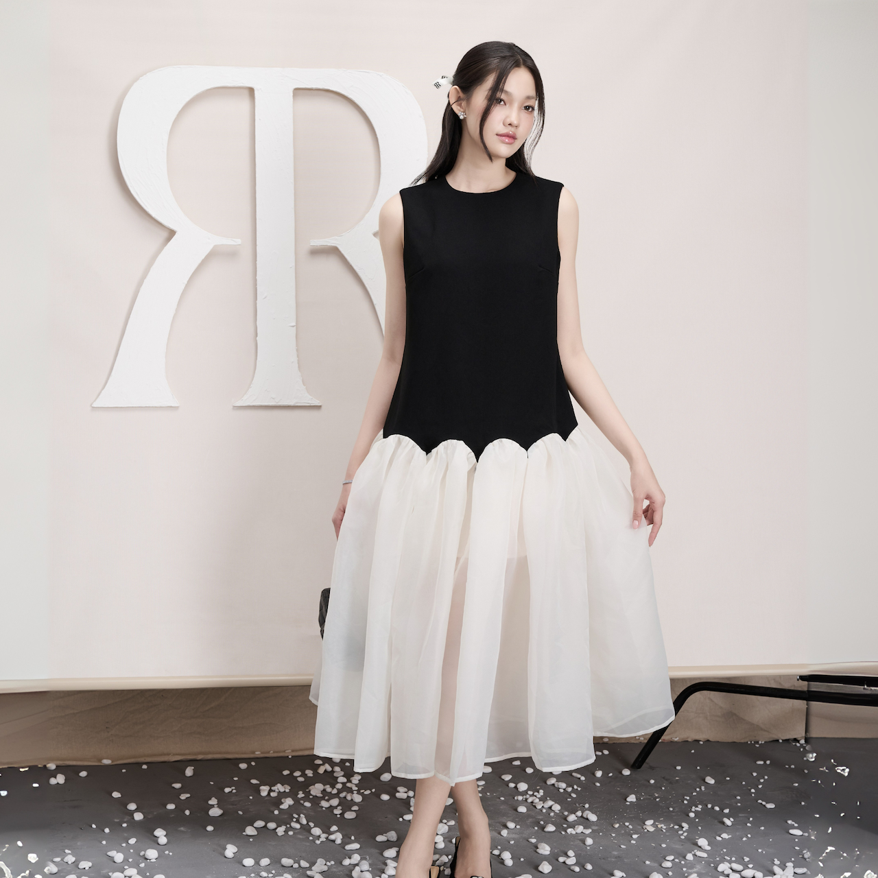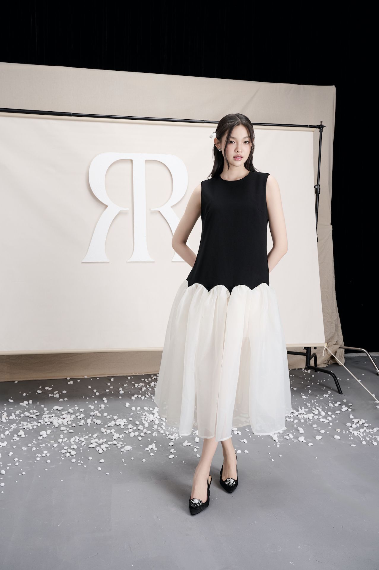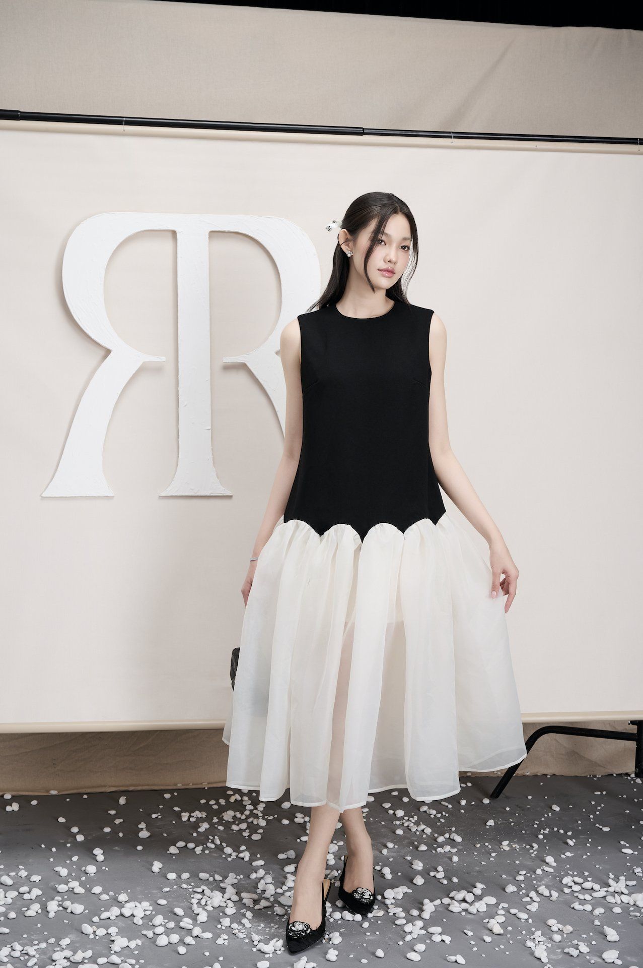 - Chất liệu: Poly, ít nhăn, co giãn nhẹ phối voan